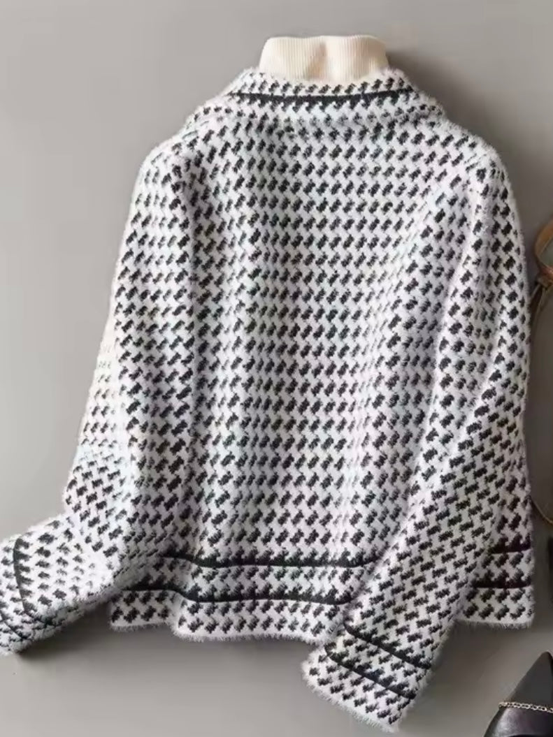 Beige and white embroidered V-neck jacket