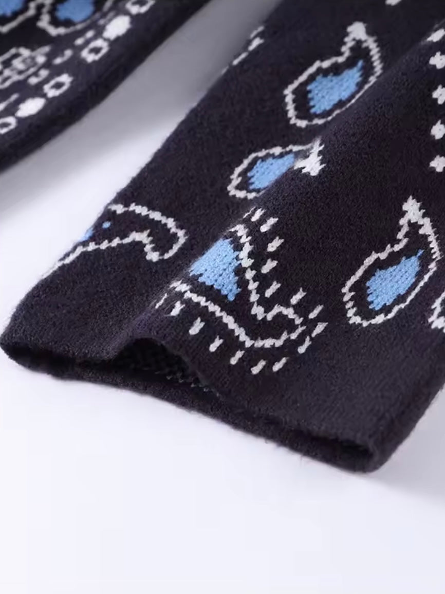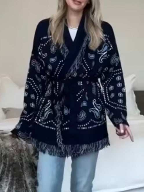 A Stitch Tassel Patchwork Printed Cardigan Women Geometric Patterns knitted Blazer Style Cardigan Sweater.
